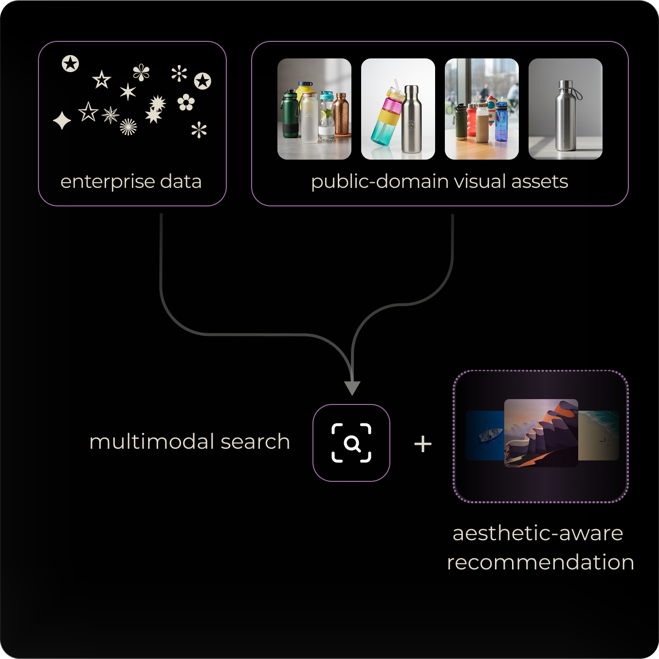 Index enterprise data and high-quality public-domain visual assets that support flexible multimodal search with aesthetic-aware recommendations.